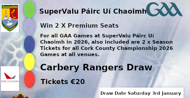 Includes all GAA games at SuperValu Pairc Ui Chaoimh in 2026, also included are 2 X Season Tickets for all Cork County Championship 2026 Games at all venues.